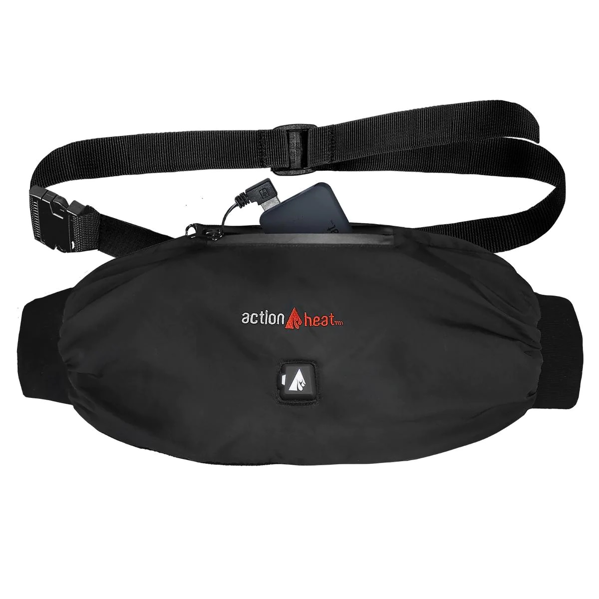 The ActionHeat 5V battery heated hand warmer muff is the perfect way to keep your hands warm. Featuring an extra large heating panel strategically placed to keep you warm for up to 5+ hours. The Hand Warmer Muff is great for walking your dog, going to a ballgame, and even on a construction site. The ActionHeat muff features touch-button technology, with 3 easy to use heat settings. The muff will reach a maximum temperature of 125F and can last up to 5+ hours.Estimated Heating Times:High (Red): 125F – 3+ Hours.Medium (White): 115F - 4.5+ Hours.Low (Blue): 105F – 6+ Hours