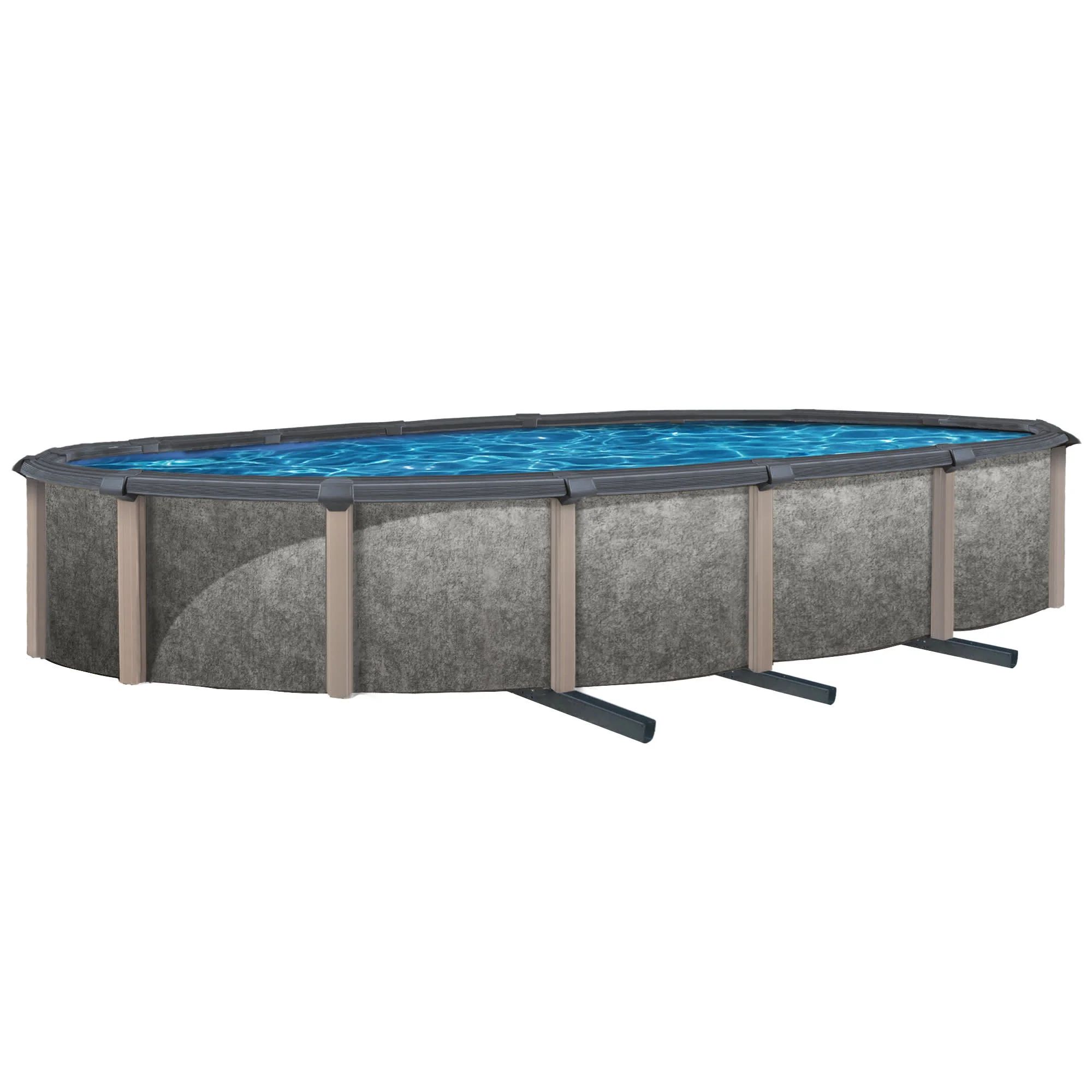 A resin top rail in rich chocolate hues creates a sophisticated, up-scale look. The patented bottom rail construction is specially dipped in a mineral coating to combat the elements. The Riviera uses extra thick gauge steel in its 6-in wide uprights and wall to make this pool rugged and durable. Its top rails are injection molded for super strength. Available in a variety of round and oval sizes to fit your backyard.
