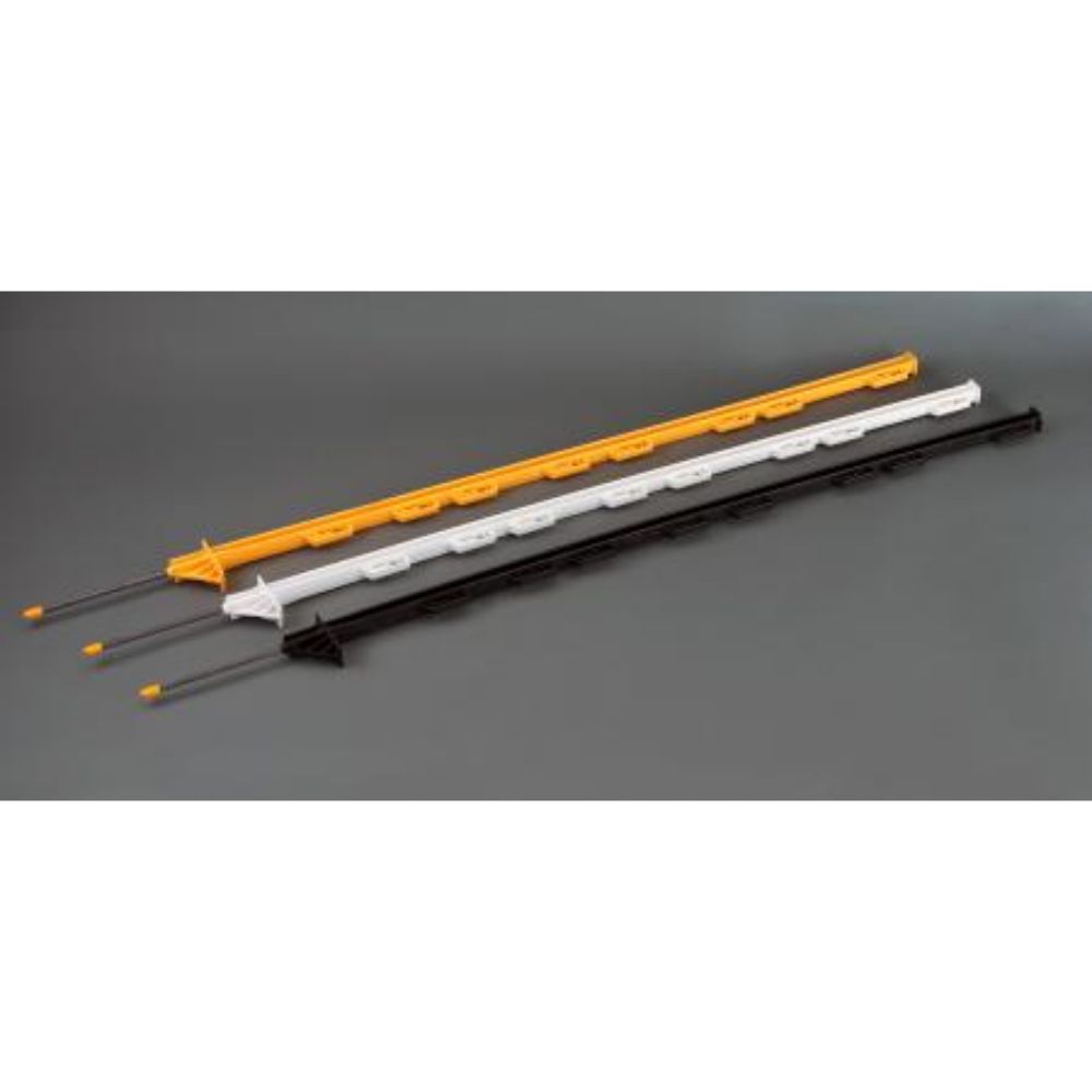 Lightweight; self-insulating; convenient to use; ideal for controlled grazing/pasture management; molded of UV resistant polyolefin; 8 wire holders for steel wire‚ poly wire and poly tape; sharp metal spike on end of post easily steps into hard ground.