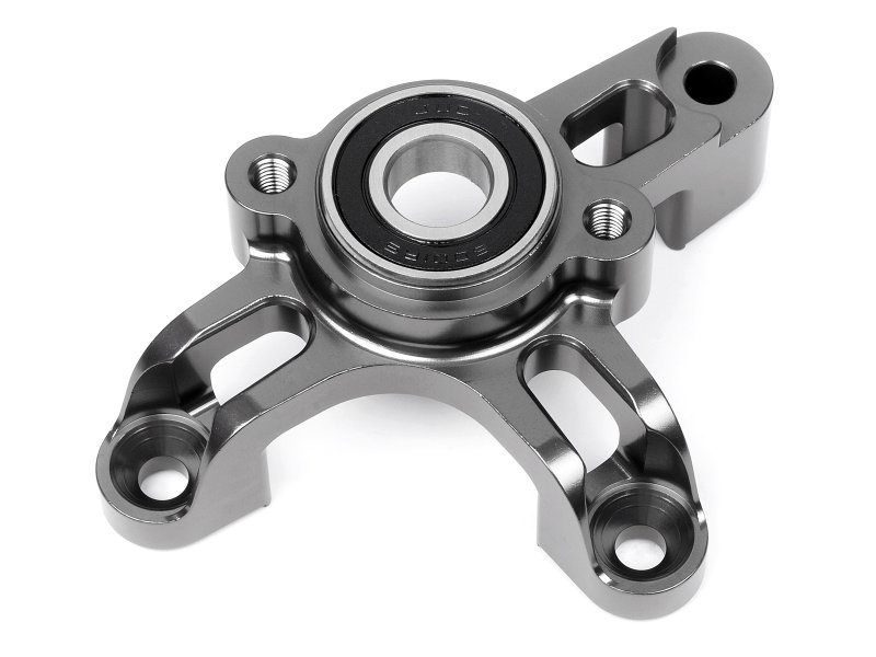Baja 5B/Baja 5T/Uses oversized bearings for more increased durability.This Heavy Duty Aluminum Pinion/Clutch Mount is a machined alloy option part for HPI Baja 1/5th scale vehicles. This is an authentic HPI bolt-in upgrade part that is precision built to the exact factory specifications for a perfect fit. Heavy duty aluminum construction helps give the pinion gear and clutch extra support for improved durability and longer gear life. The mount comes with two rubber sealed ball bearings (B097) that have a larger outside diameter for high efficiency and long life. Machined from billet aluminum and gunmetal anodized for a custom look. This upgrade part replaces the stock nylon mount (#85436).