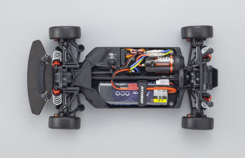 For the pure enjoyment of R/C car driving, the combination of a beautifully reproduced car body with the FAZER series chassis can't be beaten. Kyosho has taken its standard touring car chassis and given it a full model makeover that has evolved performance to a new level. A simplified design with fewer parts has improved maintenance efficiency and reduced weight while core strength and rigidity has been increased through new materials and ribbing and stiffeners on front and rear. In addition, the symmetrical chassis design synergizes excellent front-rear balance through the suspension with responsive control, irrespective of power source. Featuring slipper clutch, front & rear gear differentials, oil shocks and full ball bearing specs, the high durability and impact resistance allows drivers to unleash the full potential of the chassis.Brake disc wheel hubs with two different offsets (0mm, +5mm) provide compatibility with 190mm and 200mm width body styles and allows the wheelbase to be adjusted to 274mm by replacing some parts (sold separately) for compatibility with other 1/10 scale body styles, in addition the body included. The Readyset package comes fully assembled and includes everything except charger and battery for the chassis, and batteries for the transmitter.Features:Completely new chassis realizes low center of gravity with its simple, functional design. Featuring an integrated gearbox that optimizes torsional rigidity of the main chassis, the nylon material reduces weight while improving impact resistance. Each key component has been reinforced in this simple design without upper deck.Features a reduced number and variety of screws and parts, and consolidation of frequently used screws into the same size. Most screws are flat head screws that can be removed with a 2.0mm hex wrench for easy disassembly.Handling factors such as bump steer and scrub radius are optimized on front suspension. Simple ball-connected steering knuckle promises reliable control