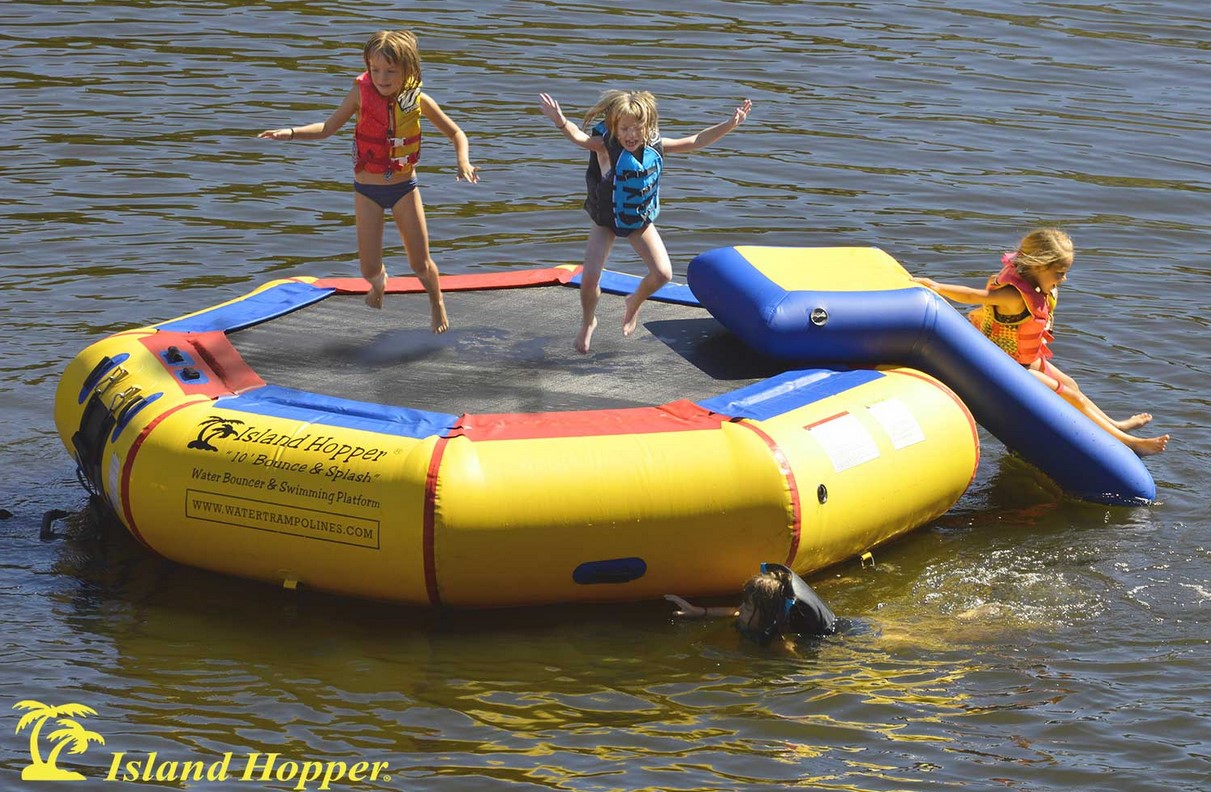 The 10’ Bounce-N-Splash padded water bouncer was designed for kids and can take hard recreational use. This product has the same high quality reinforced materials that go into all Island Hopper® water trampolines and bouncers. This manageable 10' size is perfect for kids to bounce on and for adults who are just into lounging. The spring-less, interlaced nylon webbing "bouncer" design uses tube flex features to give the user a short enjoyable "bouncer" lift. 4 step "easy access" ladder makes this a perfect product to turn a pond into a swim area or to throw on the boat and inflate at your favorite anchoring spot. Aqua Sports Technology stands behind this product with a 5 year seam “No Blow-Out” Limited .