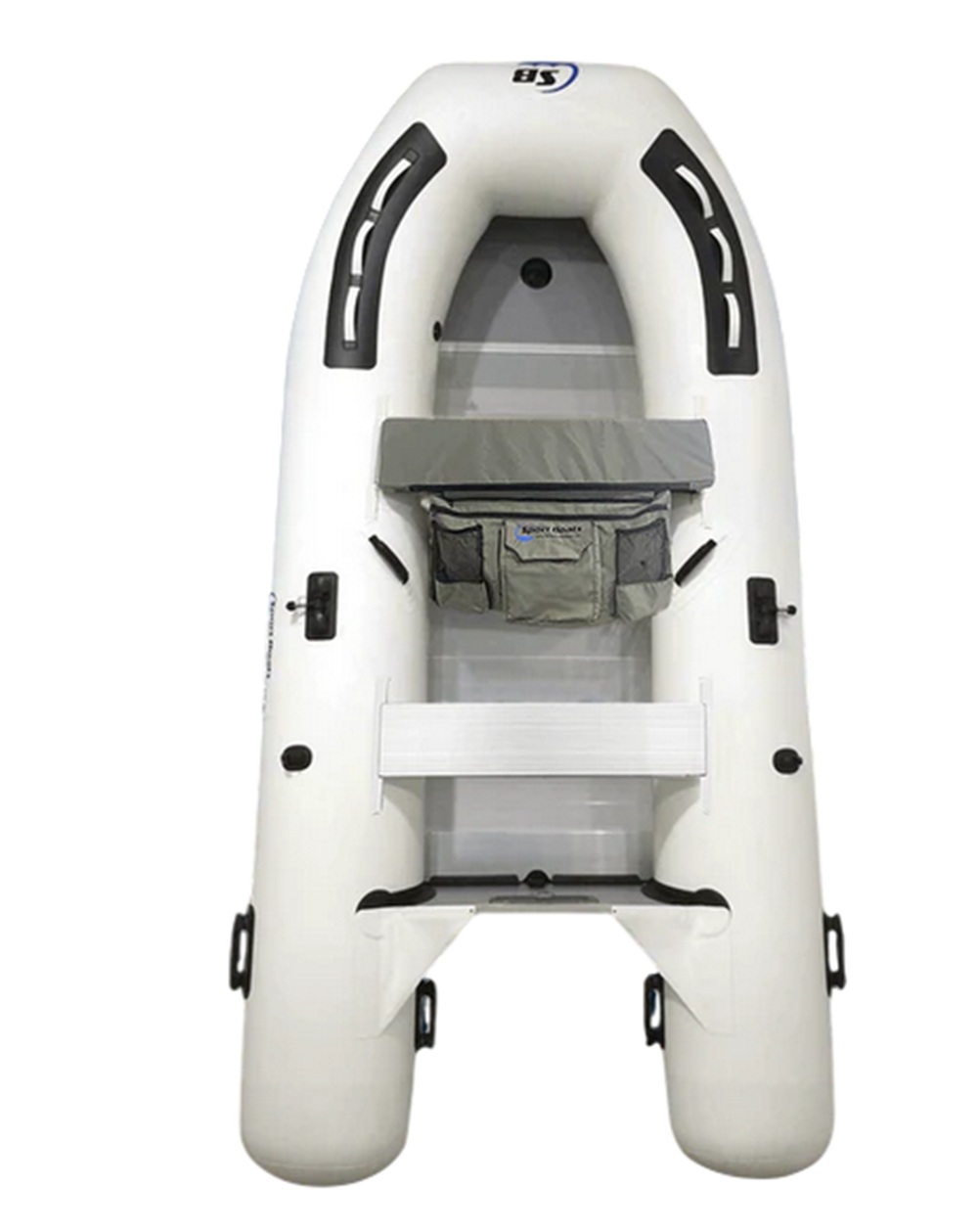 This 9.8-foot aluminum-floor inflatable boat is designed for stability, speed, and reliable long-term performance, Contoured rear pontoons enhance buoyancy and allow for faster planning, even with heavier loads or larger motors. The rigid aluminum floor system provides a stable, easy-to-clean deck that delivers confident handing on the water. The boat ships as a complete package with essential accessories, is USCG approved, and is backed by a three-year limited warranty.