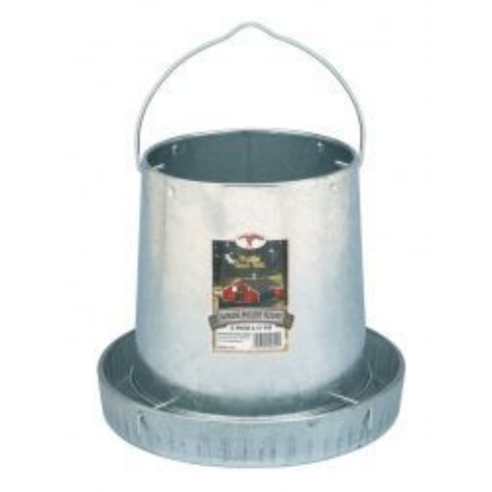 Product Description Saves floor spaceReduces feed waste by eliminating scratchingCuts down on debris in the feedHanging handle includedHolds approximately 12 pounds of feed