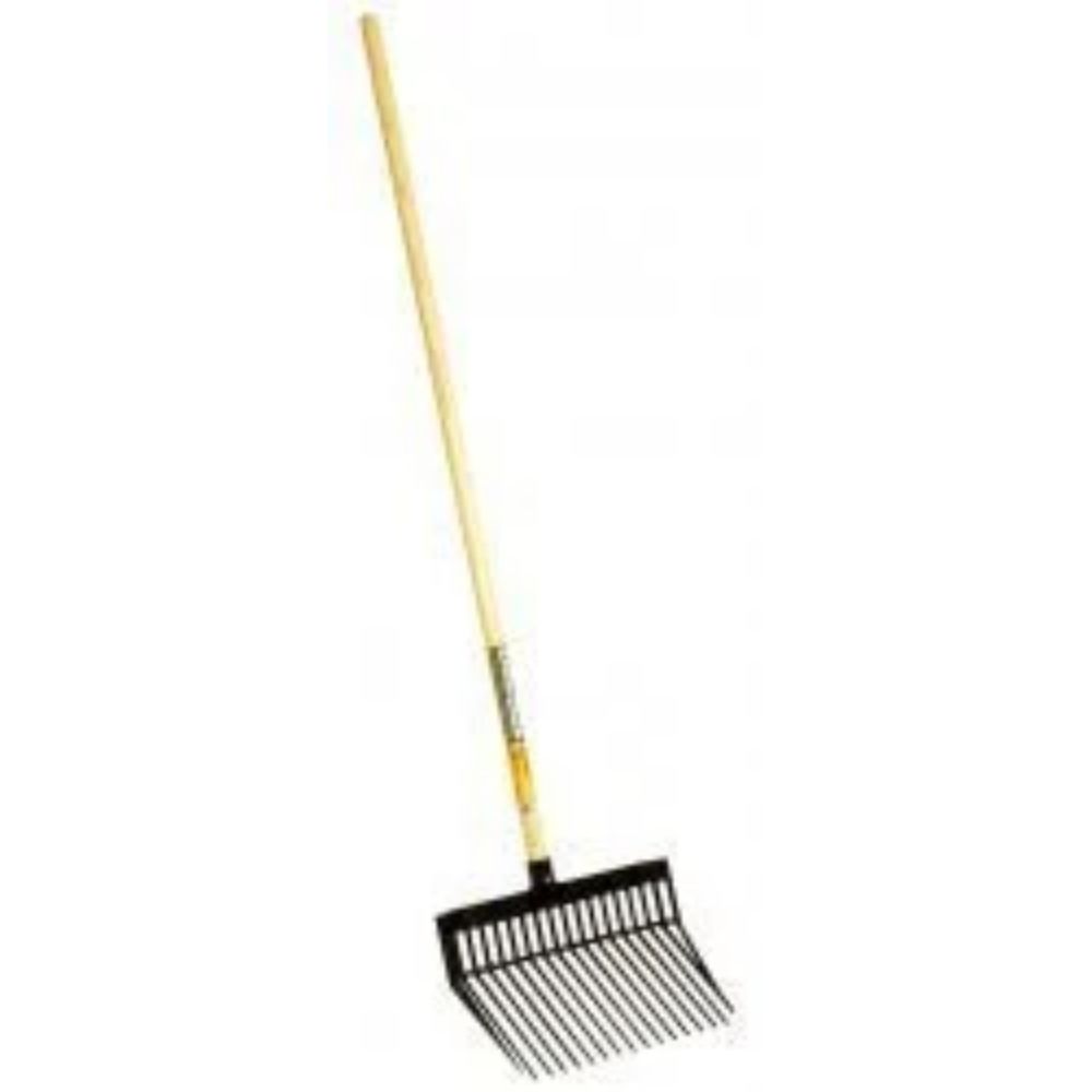 This is the original Little Giant DuraFork bedding fork that is a fixture in stables and barns everywhere. Manufactured from extra-strong 100 percent polycarbonate to provide super strength and flexibility. Designed for long-lasting use around the farm, ranch, and home. Specially designed tines are uniquely angled to provide easy manure pickup with less spilling. Nylon locknut secures the 52 inch long by 1.125 inch diameter hardwood handle. Fork head is 13.125 inch long by 15.125 inch wide. Purple fork head.
