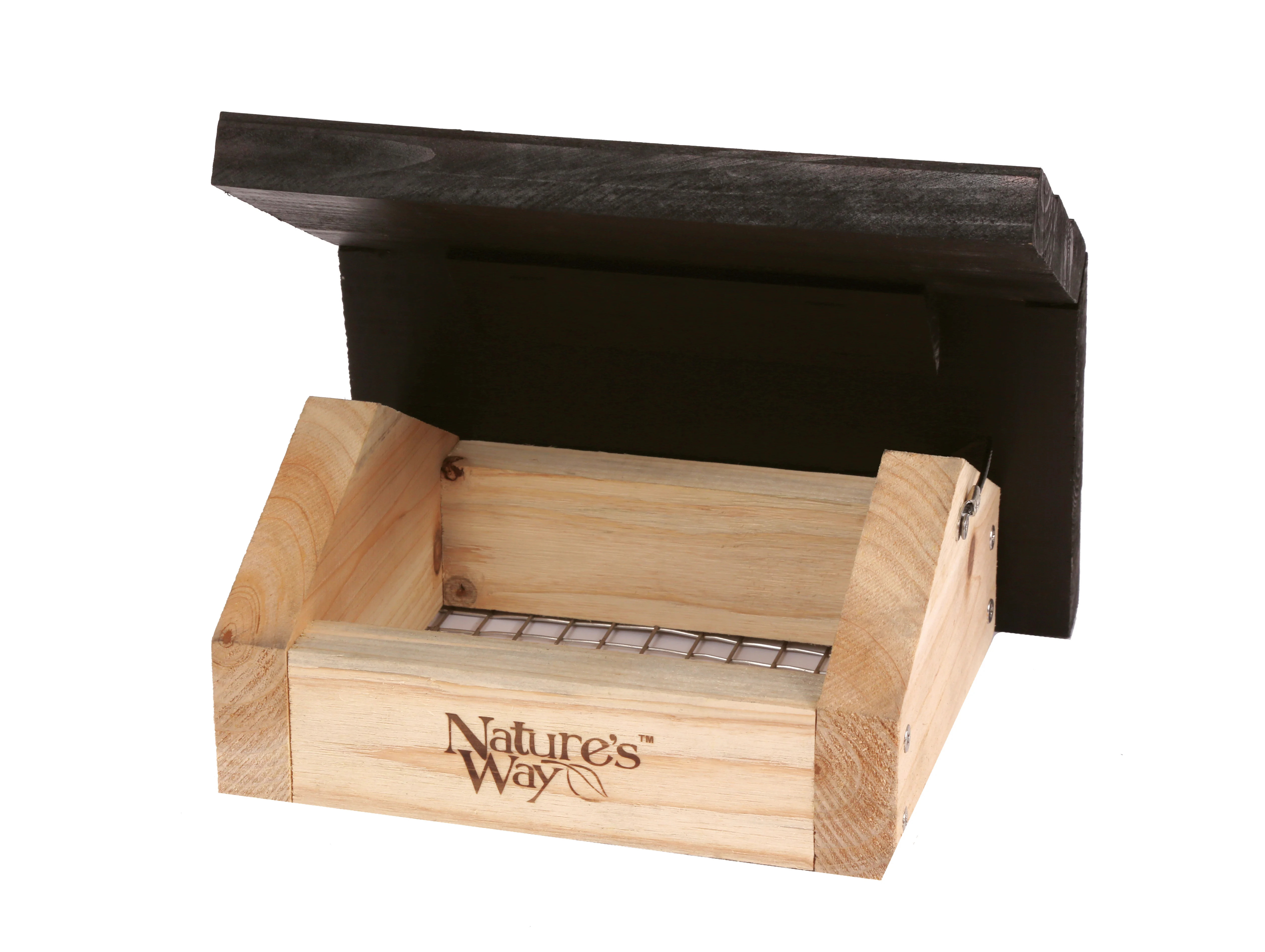 Product Description Premium insect & rot resistant cedar; helps to naturally eliminate nuisance birds from eating the suet since they don’t feed hanging upside down; hardware is rust-free; 5 year ; # CWF2; 4.125” x 8.5” x 8.5”; holds two standard suet cakes.