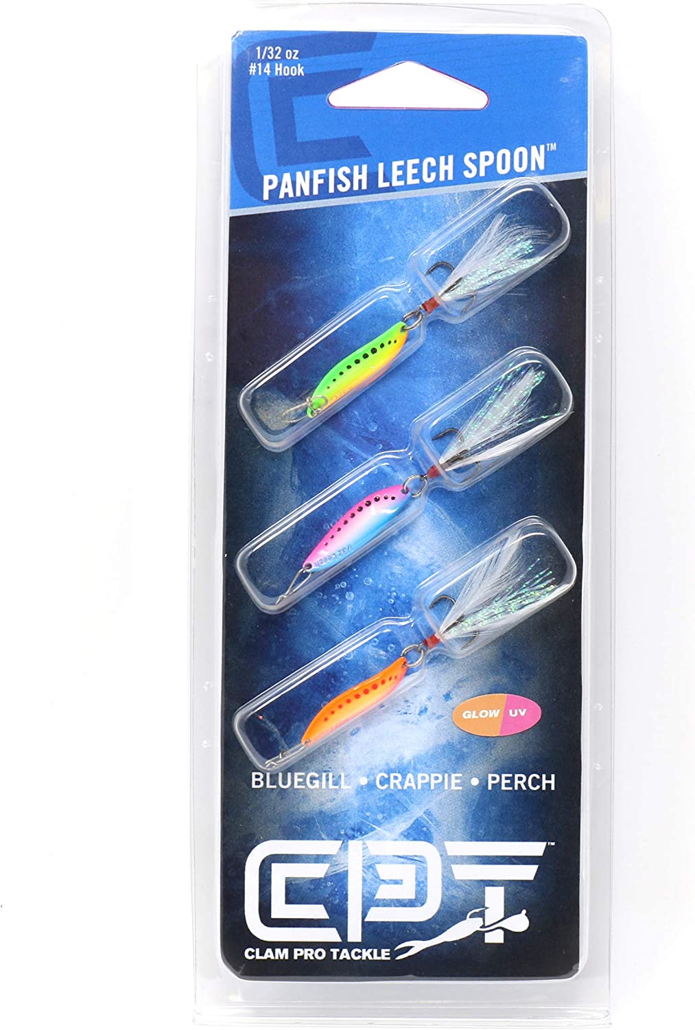 New Clam Panfish Leech Flutter 1/32Oz Size 14 Glow Spoon Kit