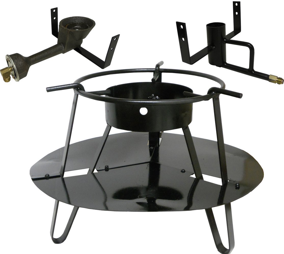 16" Heavy Duty Welded Outdoor Cooker, 60,000 BTU Cast Burner Attachment and a 105,000 BTU Jet Burner Attachment, Flame Protective Wind Guard, Bolt Together Heat Shields, Listed LP Hose and Adjustable Regulator with Type 1 Connection, Cooking Thermometer, Instruction/Recipe Booklet. CSA Design Certified Unit