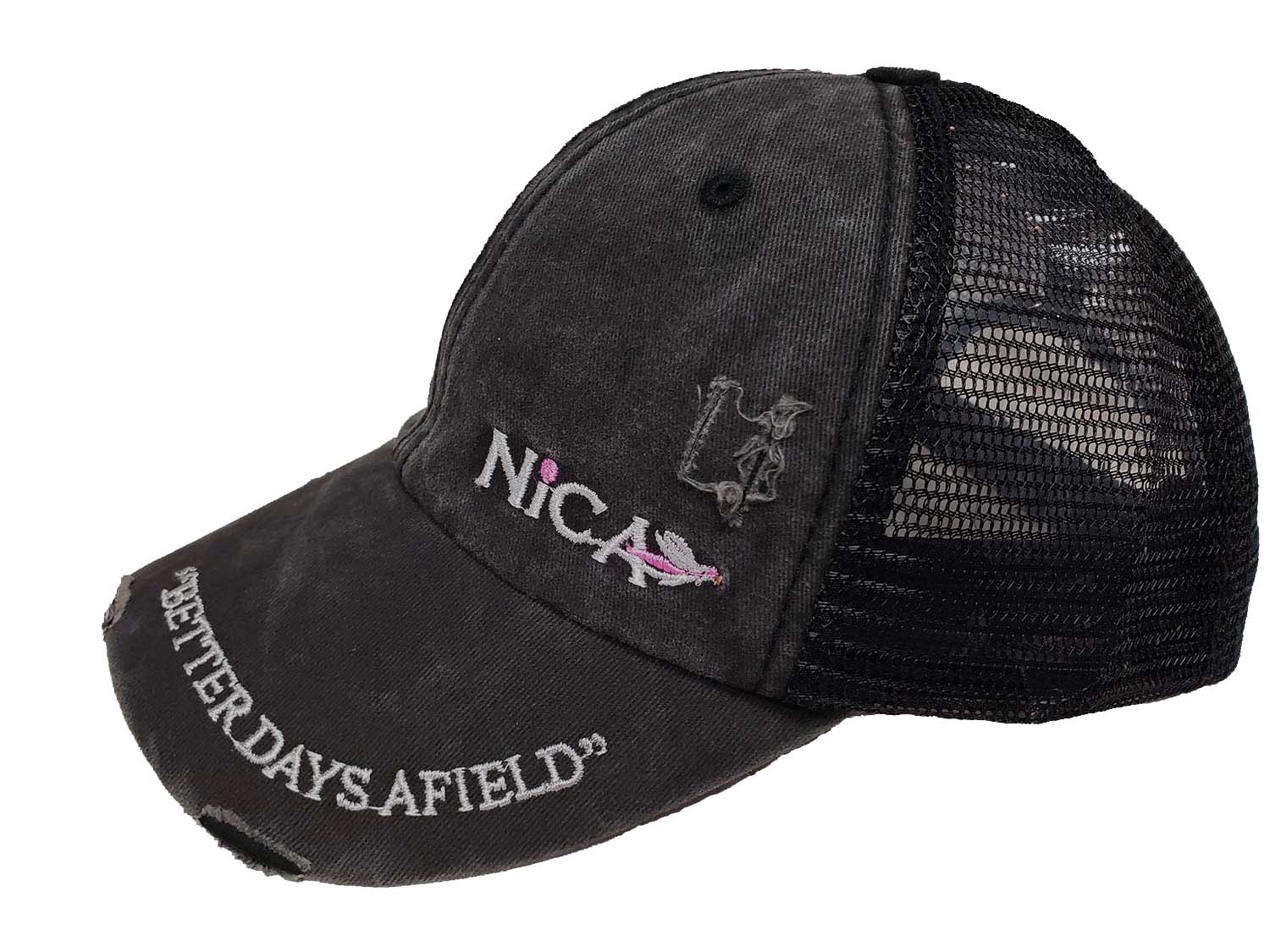 Product Description The rugged and torn cotton fabric gives this hat a comfortable feel and a cute look. The small logo with our business motto creates an understated statement. The single dot clasp rounds out the classic look.