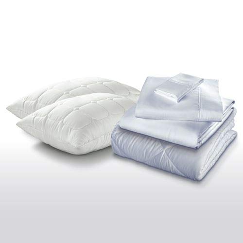 Easy and convenient, our Sleep Kit provides all of your bedding basics in one simple pack: Premium Microfiber Comforter: - Soft feel & finish provides a premium, quality sleep surface - Breathable twill weave helps keep the sleep surface cool - Wrinkle-resistant fabric provides a smooth, beautiful finish - Features a diamond pattern and piping details for a clean, crisp look and superior construction Prima Plush Pillows: - Premium fiber fill provides soft comfort - Allows air to flow through the pillow, offering temperature control throughout the night - Ultra-soft quilted cover features a satin piping detail Premium Microfiber Sheet Set: - Ultra-soft feel & finish provides a premium, quality sleep surface - Breathable extra-fine twill weave helps keep the sleep surface cool - Wrinkle-resistant fabric provides a smooth, beautiful finish - Pocketed Precision-Fit™ corners and simple elastic band provide a clean, crisp fit on fitted sheet - Enveloping pillowcases allow you to tuck your pillows into each case - Additional 4" flat sheet width for complete coverageFeatures