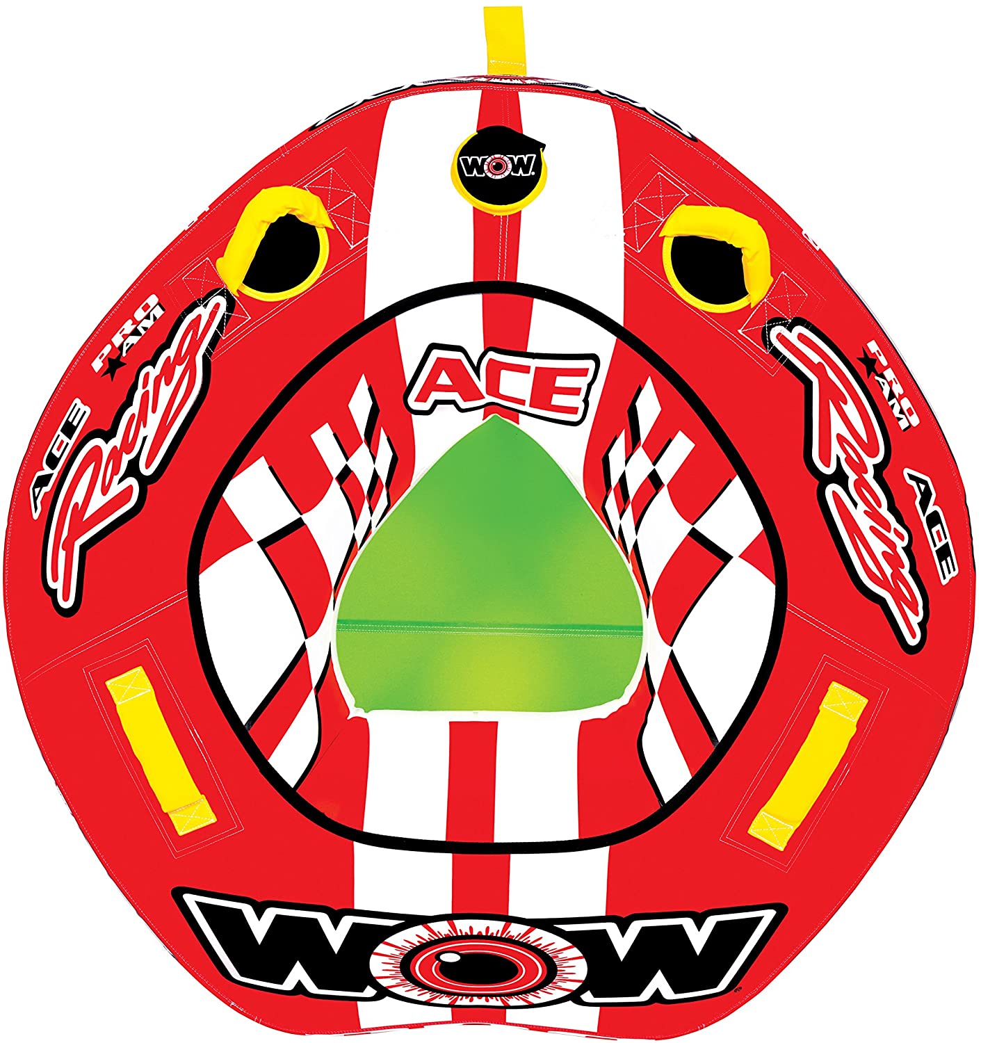 The one person, partial covered boat tube was invented in 1984 by the Head Designer of WOW. Millions have been sold over the years so WOW has decided to change it up a bit with an arrow shaped design rather than a circular one. This new design allows for more stability and control for the rider. A new twist on an old concept.