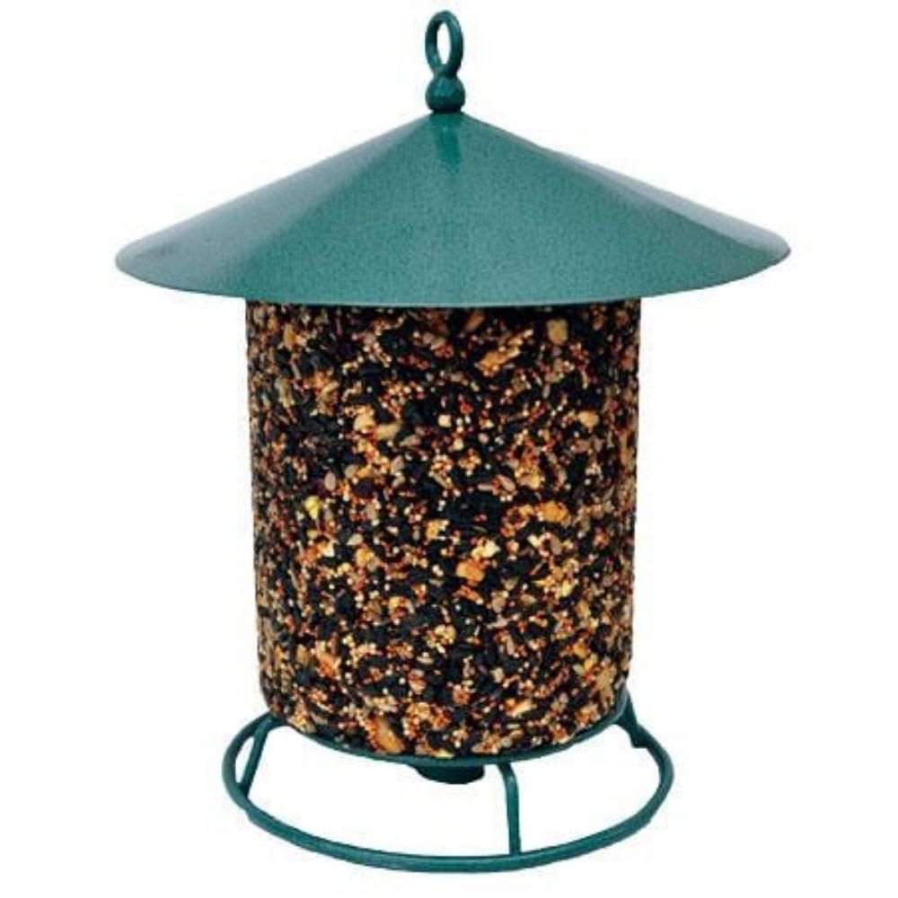 Any size of the Pine Tree Farms Classic Seed Logs fit in this stylish backyard feeder; constructed of durable powder-coated steel; roof protects the seed logs from the elements. (Please note - From time to time, vendor may substitute with a decorative version of the feeder in order to maintain uninterrupted supply. Decorative version does not have underside pole mounting capabilities and must be hung.)