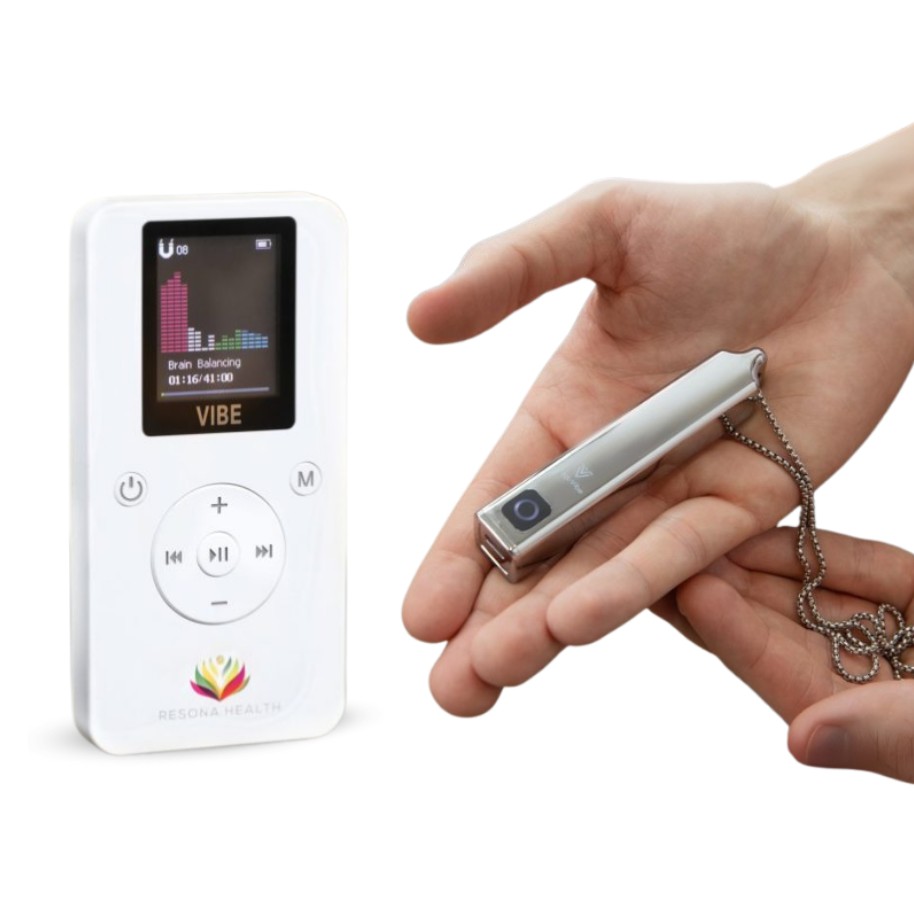 The VIBE + VaguVibe Bundle brings together two complementary Resona Health wellness tools. The VIBE offers a wide range of gentle frequency sessions for everyday well‑being, while the VaguVibe provides steady, calming support throughout the day. Together, they create a simple, balanced wellness routine.