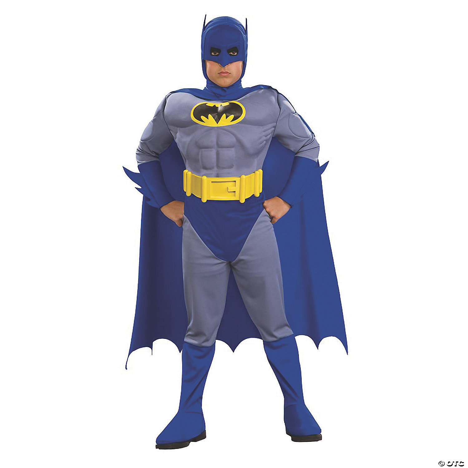 Any little or older boy will feel like a real live superhero when he wears this cool and fun Batman costume for boys for Halloween this year. Complete with headpiece, cape, belt and top with a muscle chest jumpsuit with boot covers, all boys who dress up in this costume will be the envy of their friends. This fun costume idea is easy to wear and is great for an awesome Halloween for young and older boys alike this year. Includes: • Muscle chest jumpsuit with attached boot tops • Headpiece • Cape • Belt Imported