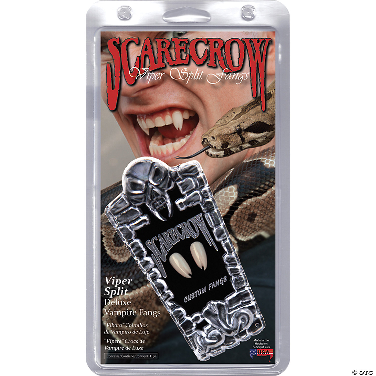 Scarecrow Vampire Fangs Get the most realistic comfortable fangs available! Easy fast and everything included to customize the highest quality fang caps to your teeth. The permanent snap-fit mold created allows you to reuse for life without the need for any adhesive and no partial plate.