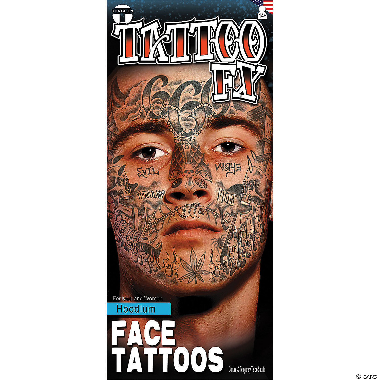 Increase Quantity of Tinsley Transfers Hoodlum Face Tatttoo Temporary Tattoo