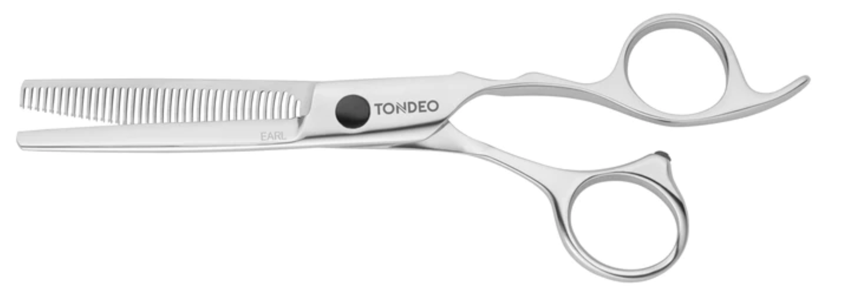 THINNING SCISSORS TONDEO EARL (38) EXTREME SHARPNESS MEETS EXTREME PRECISION The thinning scissors TONDEO EARL in the size 6.0“are a prime example of the extraordinary, combining tradition and innovation. Part of our TONDEO BARBER’S TOOLBAR, these hairdressing scissors were developed in cooperation with professional barbers. The result is an absolutely innovative cutting edge that contributes to the striking look. The EARL is the perfect pair of hairdressing scissors for men’s haircuts. Our PREMIUM-LINE features top-notch quality from Solingen, a city known for its premium blades. Our online shop also offers the matching hair scissors TONDEO